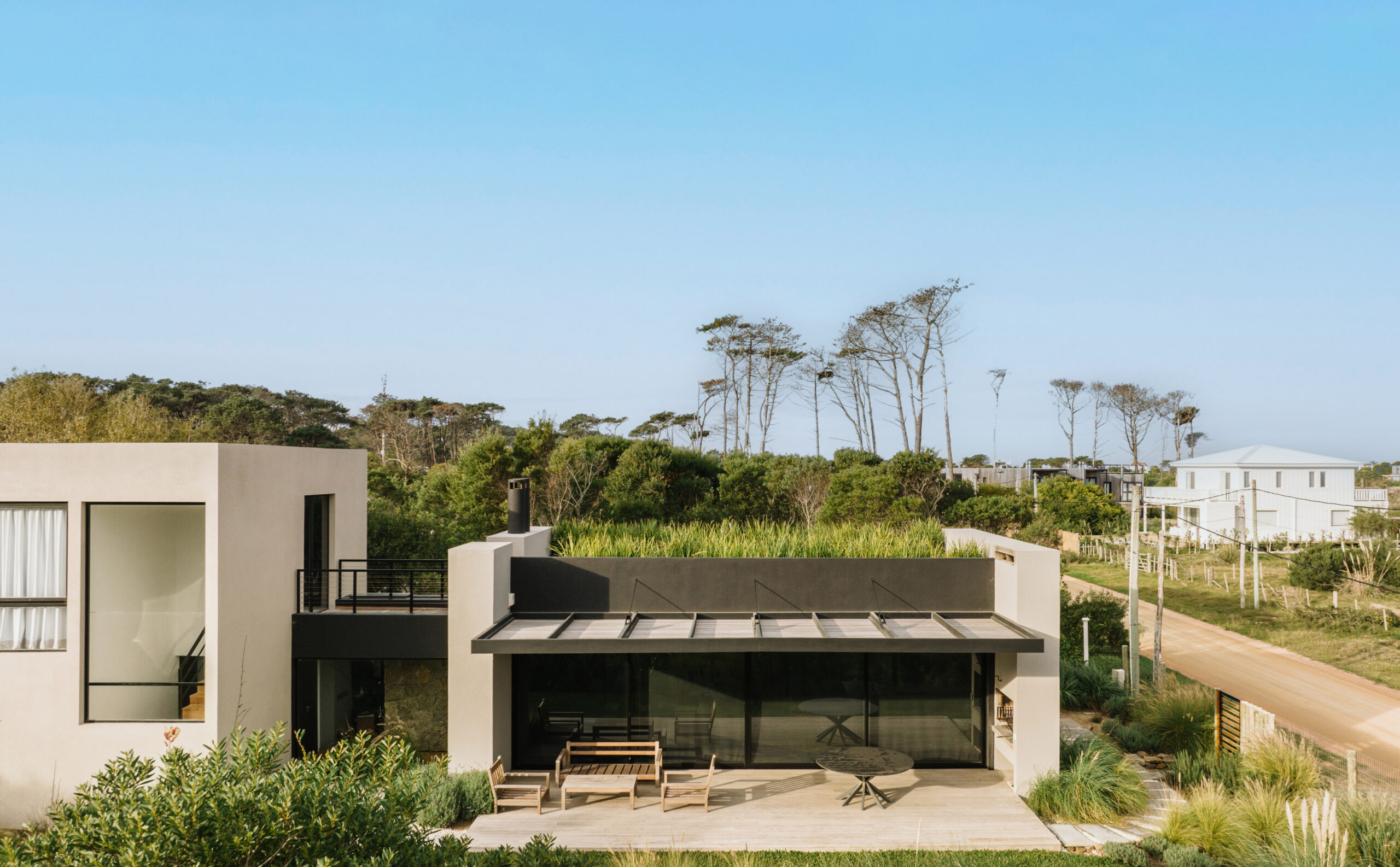 Com design minimalista, moderno e cercada por vegetação, a casa MPLR acompanha a estática de um balneário sofisticado e exclusivo de atmosfera bucólica na Praia de José Ignacio/UY.
