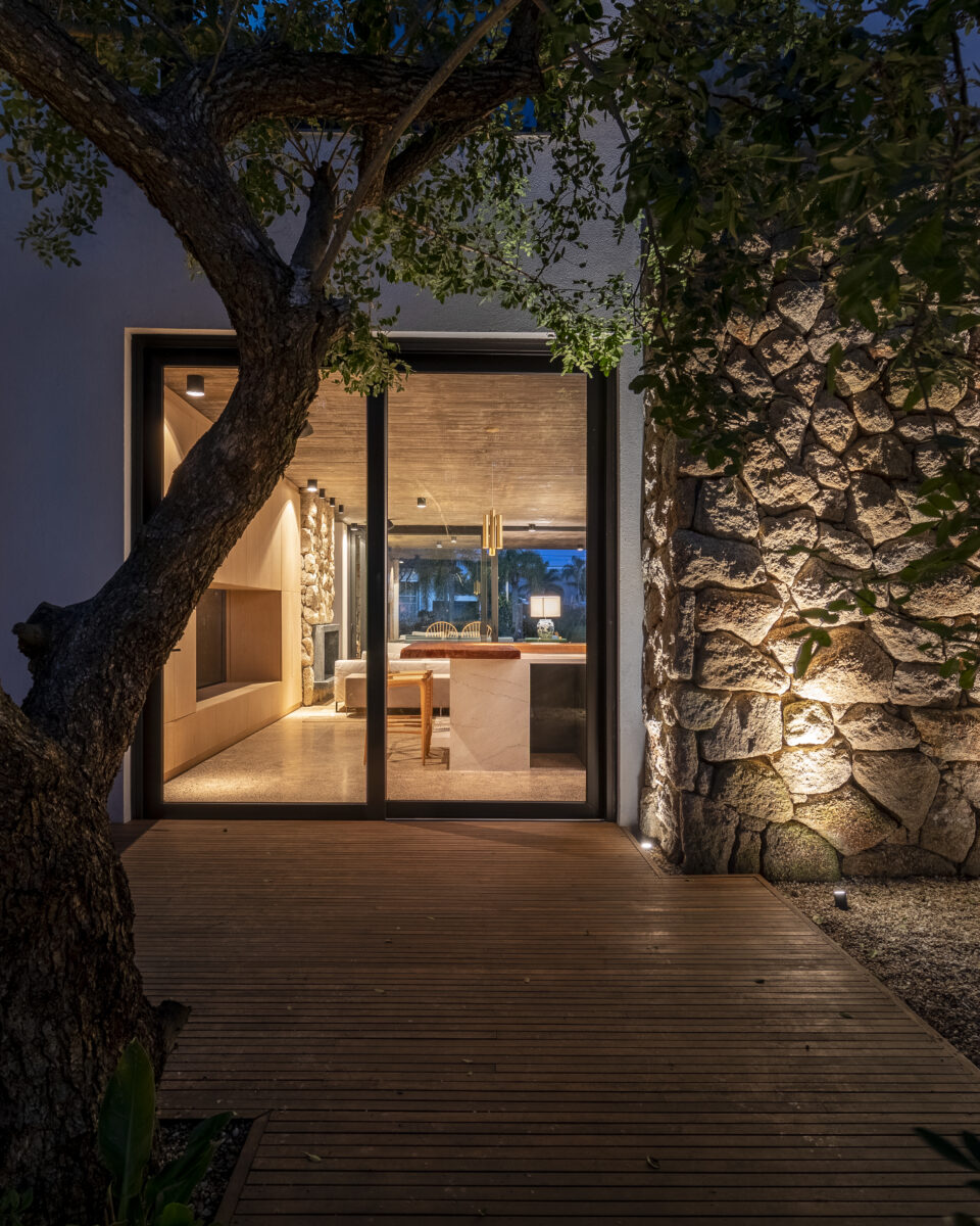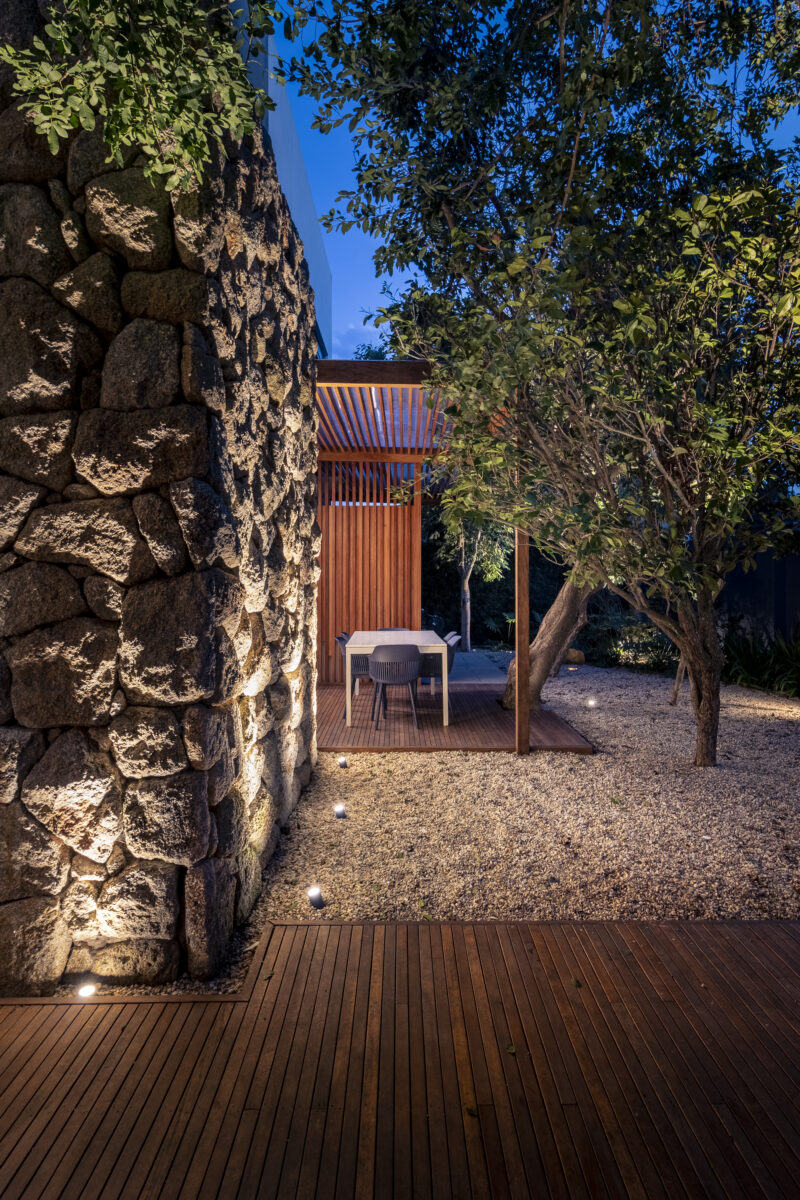 "O principal desejo dos proprietários foi a integração do espaço interno da casa com a área externa. Como a casa está em condomínio privado, a liberdade de não ter muros e grades permitiu que o paisagismo participasse do interior da casa através dos grandes vãos das esquadrias"